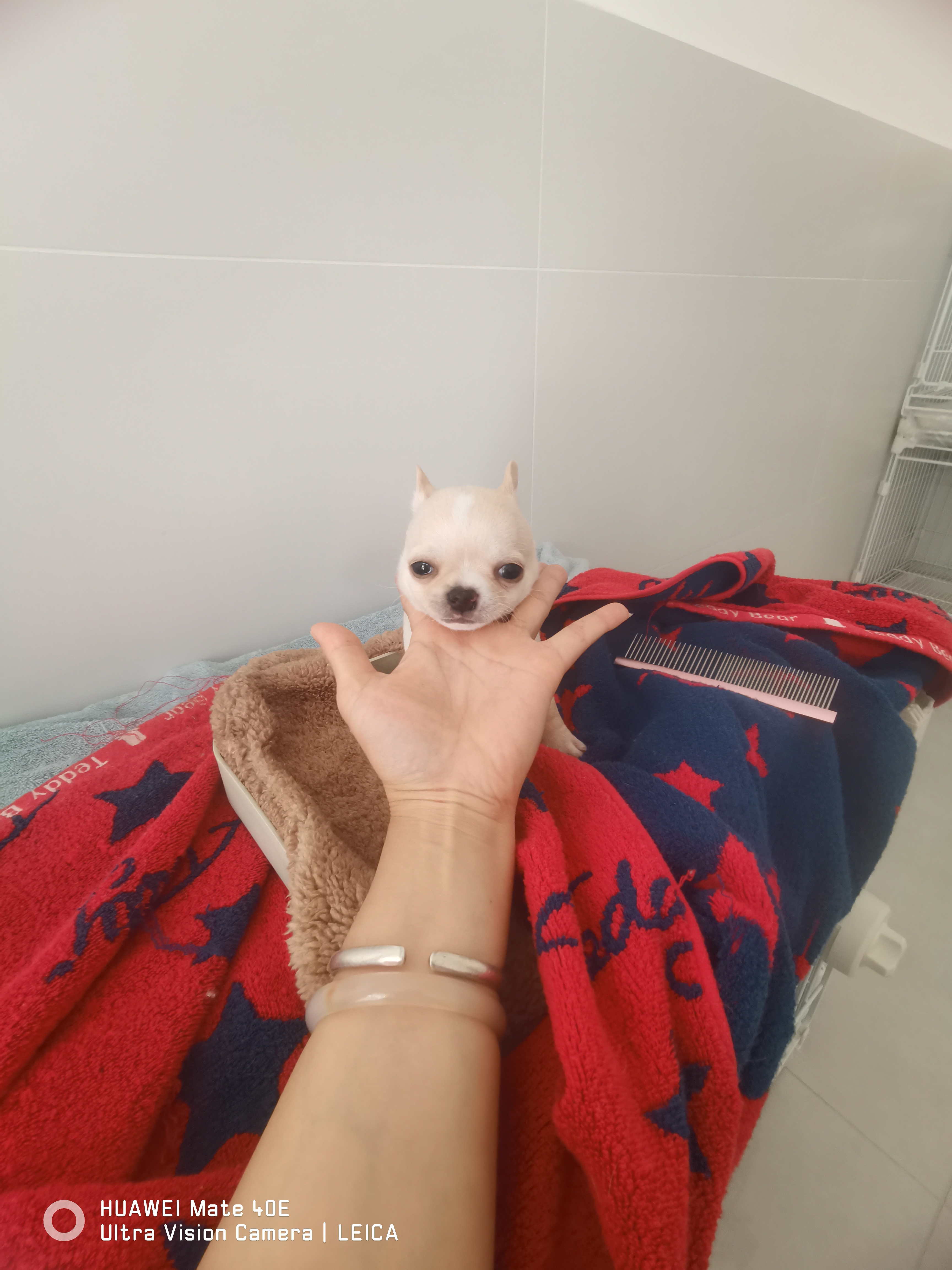 自家吉娃娃于1月17号生产 有两母一公 母的颜色有一只白色,一只铁包金 公的颜色是奶油金 喜欢的可以私聊本地的可以上门看狗
