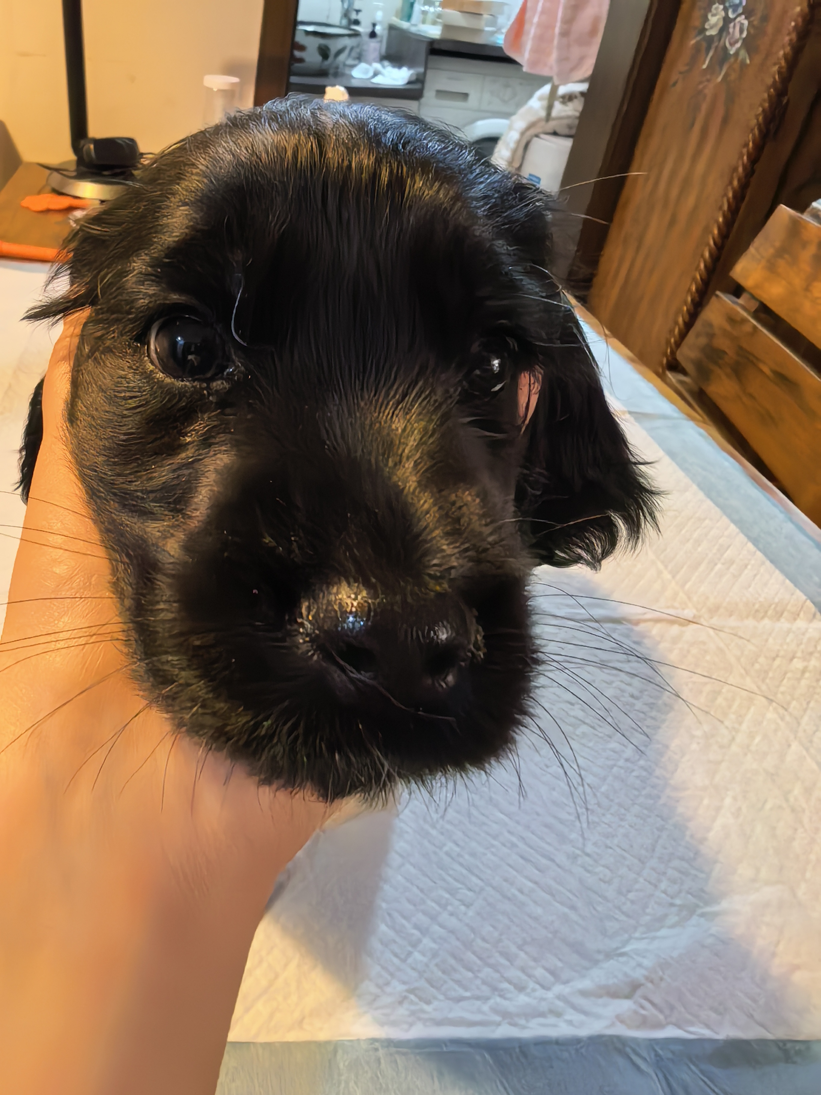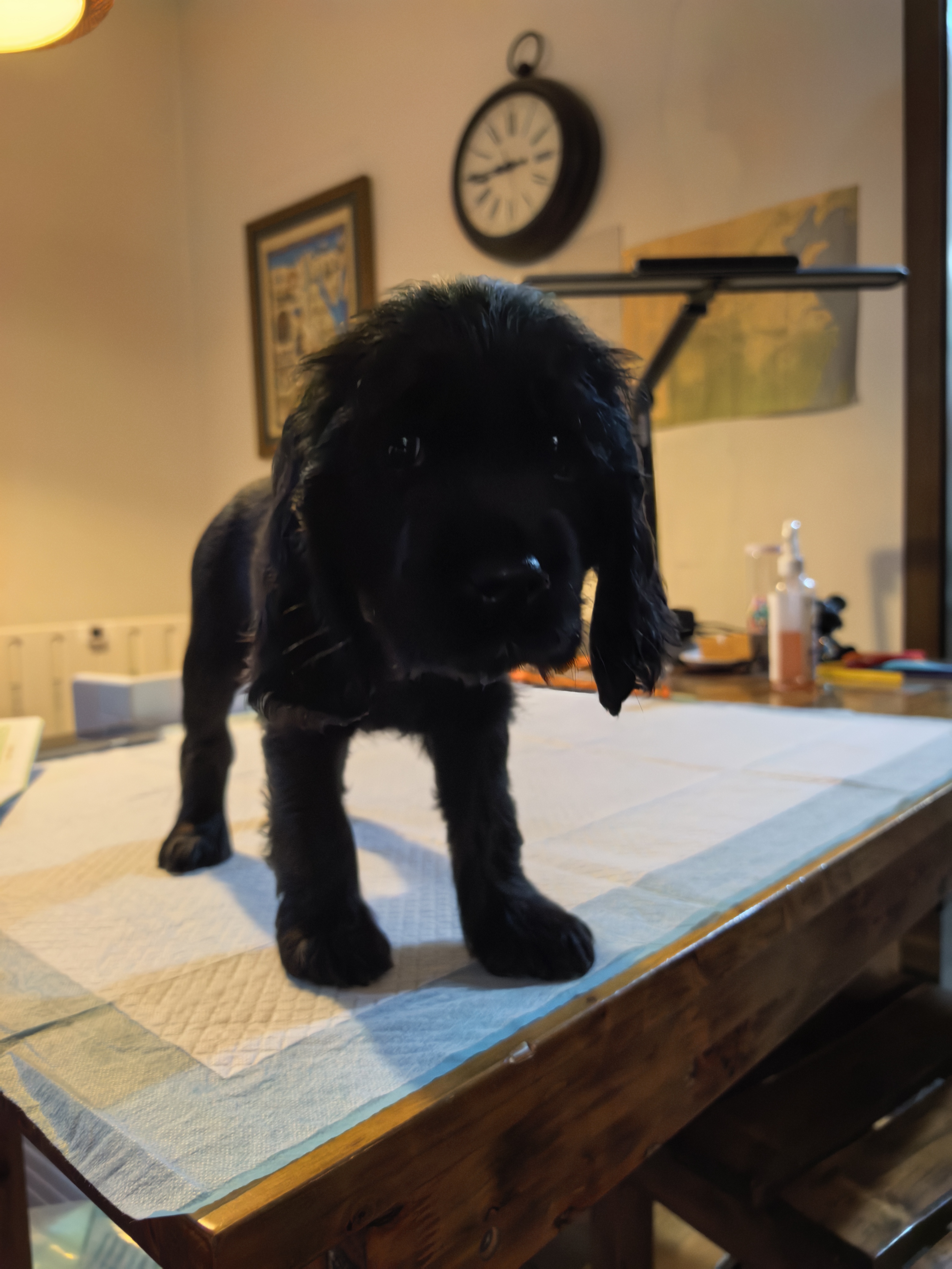 自己家养的两只纯英国可卡犬下了6只崽崽,这是老五,黑色,妹妹,温柔粘人,可卡犬作为儿童的成长陪伴犬和退休人员的生活陪伴犬,是个不错的选择喔。