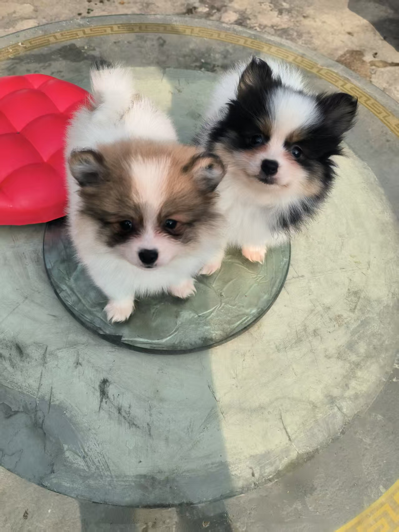 精致:独特英系 三色🦋花博美 一公一母,毛髮有蜕变期,越养成年越漂亮 ,联苗齐全 健康保证。